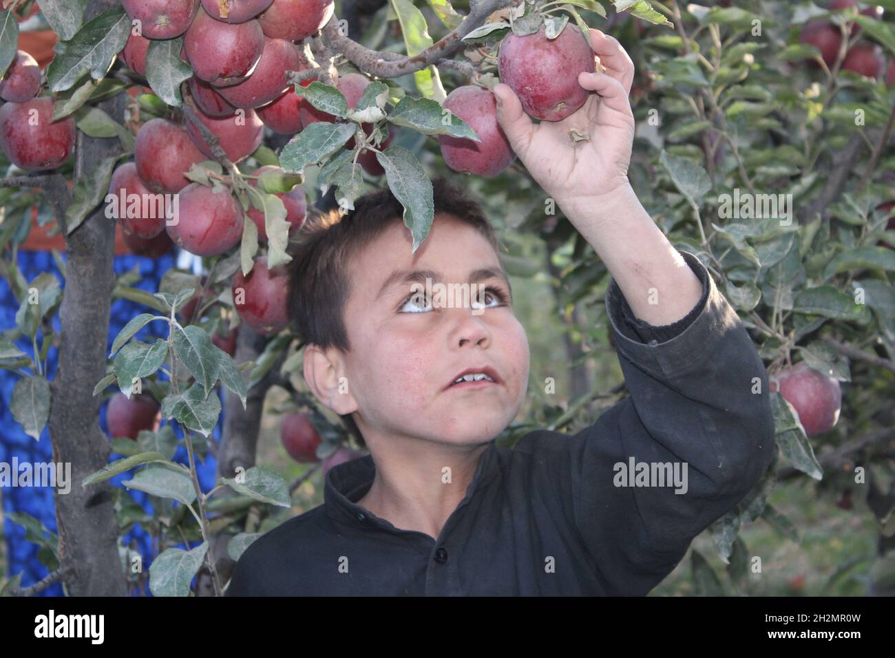 Kabul Afghanistan 22nd Oct 2021 A Boy Harvests Apple At A Field In Jalrez District Of Wardak Province Afghanistan Oct 22 2021 The Province 35 Kilometers To The West Of Kabul Capital